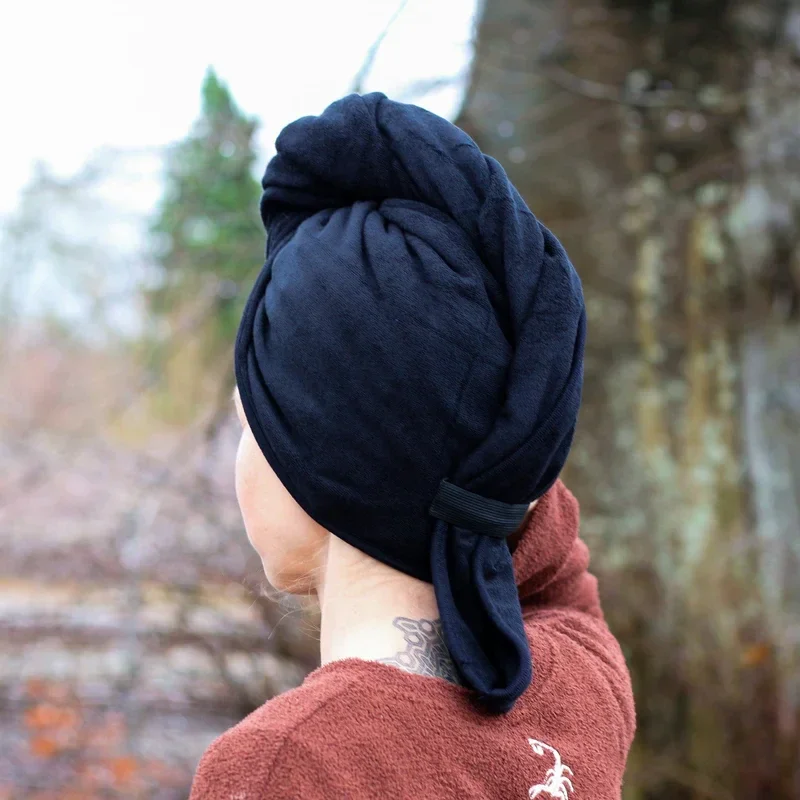 Functioneel twist-design: met ons slimme twist-design kun je de handdoek eenvoudig om je hoofd wikkelen en het uiteinde in de elastische band stoppen. Hierdoor heb je je handen vrij voor andere taken, terwijl je haar in alle rust droogt.